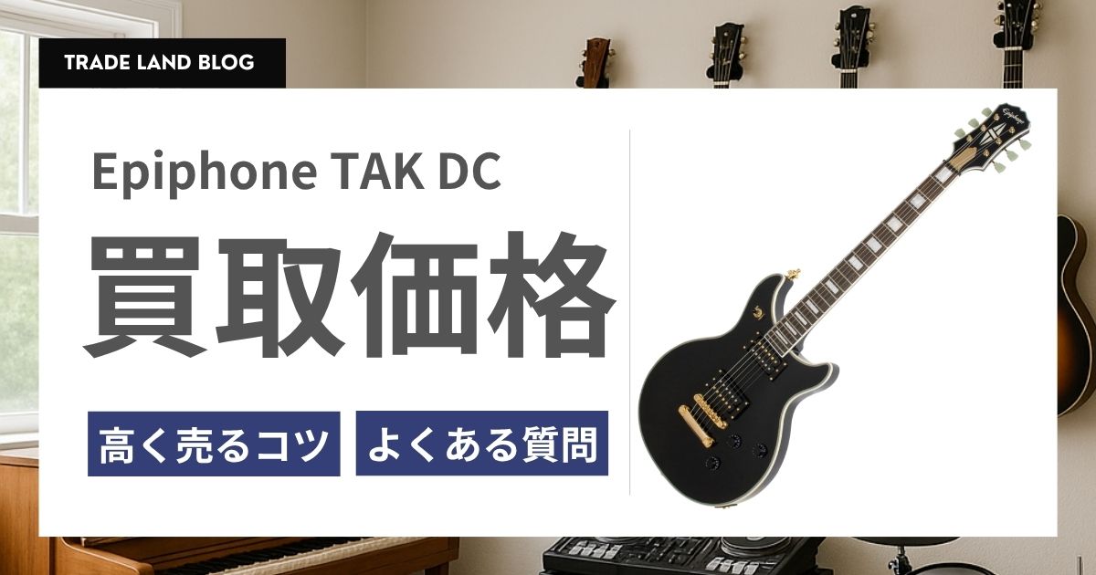 エフェクター、アンプ、シールド、ストラップ、ハードケースなどの周辺機材と一緒に売却すると、Epiphone TAK DCも高価買取の対象になりやすくなります。